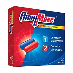 Набор капсул двух видов.Капсулы П твердые желатиновые, размер №0, синего цвета; содержимое капсул - смесь порошка и гранул белого или белого с кремоватым или розоватым оттенком цвета, допускается наличие комков, распадающихся при надавливании (10 шт. в упаковке).1 капс.парацетамол360 мгВспомогательные вещества: крахмал прежелатинизированный - 9 мг, кремния диоксид коллоидный - 3 мг, лактозы моногидрат - 1.2 мг, магния стеарат - 3.8 мг, полисорбат 80 - 3 мг.Состав твердой желатиновой капсулы: желатин - 94.795 мг, краситель синий патентованный (Е131) или краситель бриллиантовый голубой (E133) - 0.265 мг, титана диоксид (Е171) - 1.94 мг.Капсулы P твердые желатиновые, размер №0, красного цвета; содержимое капсул - смесь порошка и гранул от желтого до желтого с зеленоватым оттенком и белого цвета, допускается наличие комков, распадающихся при надавливании (10 шт. в упаковке).1 капс.аскорбиновая кислота300 мгкальция глюконата моногидрат100 мгримантадина гидрохлорид50 мгрутозида тригидрат (в пересчете на рутозид)20 мглоратадин3 мгВспомогательные вещества: крахмал картофельный - 2.2 мг, магния стеарат - 4.8 мг.Состав твердой желатиновой капсулы: желатин - 94.064 мг, краситель железа оксид желтый (Е172) - 0.97 мг, краситель железа оксид красный (Е172) - 0.485 мг, краситель пунцовый [Понсо 4R] (Е124) - 0.511 мг, титана диоксид (Е171) - 0.97 мг.20 шт. (10 капс. П синего цвета и 10 капс. P красного цвета) - упаковки ячейковые контурные из пленки поливинилхлоридной и фольги алюминиевой (2) - пачки картонные.Таблетки шипучие [со вкусом и ароматом клюквы, со вкусом и ароматом малины] от светло-розового до темно-розового цвета с более светлыми и темными вкраплениями, круглые, плоскоцилиндрические, с шероховатой поверхностью, с фаской, с характерным запахом; допускаются вкрапления зеленовато-желтого цвета; гигроскопичны.1 таб.парацетамол360 мгаскорбиновая кислота300 мгкальция глюконата моногидрат100 мгримантадина гидрохлорид50 мгрутозида тригидрат (в пересчете на рутозид)20 мглоратадин3 мгВспомогательные вещества: лимонная кислота - 716 мг, натрия гидрокарбонат - 584 мг, сорбитол - 97.85 мг, макрогол (полиэтиленгликоль 6000) - 75 мг, изолейцин - 75 мг, ароматизатор клюквенный или малиновый - 75 мг, ацесульфам калия - 20 мг, аспартам - 20 мг, повидон (повидон К30) - 3.75 мг, краситель красный свекольный (Е162) - 0.4 мг.10 шт. - тубы полипропиленовые (1) - пачки картонные.Порошок для приготовления раствора для приема внутрь [со вкусом и ароматом клюквы, со вкусом и ароматом лимона, со вкусом и ароматом лимона и меда, со вкусом и ароматом малины, со вкусом и ароматом черной смородины] в виде смеси порошка и гранул от почти белого до желтого с зеленоватым оттенком цвета, с характерным запахом (клюквы или лимона, или лимона с медом, или малины, или черной смородины); допускается наличие единичных гранул розового цвета; приготовленный раствор бесцветный или с желтоватым оттенком, слегка мутный, с характерным запахом (клюквы или лимона, или лимона с медом, или малины, или черной смородины); допускается наличие нерастворенных частиц желтого цвета.1 пак.парацетамол360 мгаскорбиновая кислота300 мгкальция глюконата моногидрат100 мгримантадина гидрохлорид50 мгрутозида тригидрат (в пересчете на рутозид)20 мглоратадин3 мгВспомогательные вещества: аспартам - 30 мг, гипромеллоза - 10 мг, кремния диоксид коллоидный - 20 мг, лактозы моногидрат - 4086 мг, ароматизатор (клюквенный или лим
