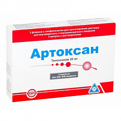 Лиофилизат для приготовления раствора для в/в и в/м введения лиофилизированный порошок или уплотненная масса в виде таблетки зелено-желтого цвета; растворитель - бесцветная прозрачная жидкость без запаха.1 фл.теноксикам20 мгВспомогательные вещества: маннитол - 80 мг, аскорбиновая кислота - 0.4 мг, динатрия эдетат - 0.2 мг, трометамол - 3.3 мг, натрия гидроксид и хлористоводородная кислота - q.s.Состав растворителя (на 1 амп.): вода д/и - 2 мл.Флаконы бесцветного стекла (3) в комплекте с растворителем (амп. 2 мл 3 шт.) - упаковки ячейковые контурные (1) - пачки картонные.
