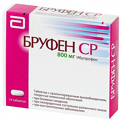 Ибупрофен представляет собой рацемическую смесь (+)S- и (-)R-энантиомеров. ВсасываниеИбупрофен быстро всасывается из ЖКТ, биодоступность составляет 80-90%, время достижения максимальной концентрации (TCmax) в плазме крови при применении лекарственной формы немедленного высвобождения - 1-2 ч. Исследования показали, что прием пищи не оказывает значимого влияния на общую биодоступность.Пролонгированная лекарственная форма таблеток ибупрофена в дозировке 800 мг по сравнению с лекарственными формами немедленного высвобождения обеспечивает постепенное, более медленное высвобождение действующего вещества и более низкую Cmax в плазме крови, которая достигается приблизительно через 3 ч после применения ибупрофена. В результате продолжительной фазы абсорбции в системном кровотоке дольше поддерживаются плазменные концентрации ибупрофена. Таким образом, ибупрофен, таблетки с пролонгированным высвобождением в дозировке 800 мг достаточно принимать только 1 раз/сут.Сравнение фармакокинетического профиля двух таблеток ибупрофена с пролонгированным высвобождением в дозировке 800 мг и таблеток ибупрофена с немедленным высвобождением в дозировке 400 мг, принимаемых 4 раза/сут, показало, что лекарственная форма с пролонгированным высвобождением обеспечивает снижение разницы между максимальной и остаточной концентрациями и обеспечивает поддержание более высоких средних плазменных концентраций через 5, 10, 15 и 24 ч. Для таблеток с немедленным высвобождением и таблеток с пролонгированным высвобождением показатели AUC были схожими.РаспределениеИбупрофен интенсивно связывается с белками плазмы крови (99%). Vd ибупрофена небольшой и составляет приблизительно 0.12-0.2 л/кг у взрослых.Метаболизм Ибупрофен быстро метаболизируется в печени при участии изоферментов цитохрома P450, преимущественно изофермента CYP2C9, с образованием двух основных неактивных метаболитов - 2-гидроксиибупрофена и 3-карбоксиибупрофена. После приема ибупрофена внутрь чуть менее 90% от принятой дозы ибупрофена может обнаруживаться в моче в виде окислительных метаболитов и их глюкуроновых конъюгатов. Незначительное количество ибупрофена выводится с мочой в неизмененном виде.ВыведениеВыведение ибупрофена через почки является быстрым и полным. Т1/2 лекарственных форм немедленного высвобождения составляет около 2 ч. Ибупрофен практически полностью выводится из организма через 24 ч после приема последней дозы.Фармакокинетика у особых групп пациентовПациенты пожилого возраста. У пациентов пожилого возраста при отсутствии почечной недостаточности наблюдаются лишь небольшие, клинически незначимые различия в фармакокинетическом профиле и выведении с мочой по сравнению с пациентами молодого возраста.Почечная недостаточность. У пациентов с почечной недостаточностью легкой степени наблюдались повышенный уровень (S)-ибупрофена в плазме крови, повышенные значения показателя AUC (S)-ибупрофена и повышенные значения энантиомерного соотношения AUC (S/R) по сравнению со здоровыми пациентами контрольной группы. У пациентов с терминальной стадией почечной недостаточности, находившихся на диализе, средняя свободная фракция ибупрофена составляла около 3% по сравнению с 1% у здоровых добровольцев. Серьезные нарушения функции почек могут привести к накоплению метаболитов ибупрофена. Значимо