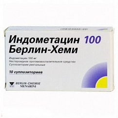 Суппозитории ректальные желтоватого цвета, торпедообразной формы с углублением в основании.1 супп.индометацин100 мгВспомогательные вещества: крахмал кукурузный - 100 мг, твердый жир - 1.7 г .5 шт. - блистеры (2) - пачки картонные.