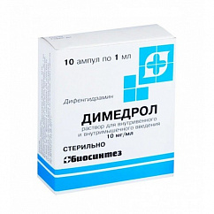 Димедрол амп.(р-р д/в/в и в/м введ.) 10мг/мл 1мл №10