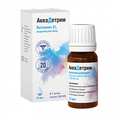 Следует избегать передозировки.Индивидуальное обеспечение определенной потребности должно учитывать все возможные источники этого витамина.Слишком высокие дозы витамина D3, применяемые продолжительно, или ударные дозы могут быть причиной хронического гипервитаминоза D3.Определение суточной потребности ребенка в витамине D и способа его применения должно устанавливаться врачом индивидуально и каждый раз подвергаться коррекции во время периодичных обследований, особенно в первые месяцы жизни.При достижении адекватного уровня концентрации витамина D в крови (>30 нг/мл 25(ОН)D) у взрослых возможно продолжение поддерживающей терапии препаратом Аквадетрим в дозе 1500–2000 МЕ (3-4 капли)/сут.Не применять одновременно с витамином D3 высоких доз кальция.Во время лечения необходим периодический контроль концентрации фосфатов в крови и моче.При длительном приеме колекальциферола необходимо регулярно определять уровень кальция в сыворотке крови и моче, а также оценивать функцию почек путем измерения сывороточного уровня креатинина. При необходимости, следует корректировать дозу колекальциферола в зависимости от уровня кальция в сыворотке крови.