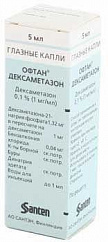 Капли глазные в виде прозрачного, бесцветного раствора.1 млдексаметазона натрия фосфат1.32 мг, что соответствует содержанию дексаметазона1 мгВспомогательные вещества: бензалкония хлорид - 40 мг, борная кислота - 15 мг, натрия тетраборат - 0.6 мг, динатрия эдетат - 0.5 мг, вода д/и - до 1 мл.5 мл - флаконы-капельницы полиэтиленовые (1) - пачки картонные.