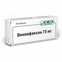 Таблетки плоскоцилиндрической формы с фаской и риской, белого или белого с желтоватым оттенком цвета; допускается легкая мраморность.1 таб.венлафаксин (в форме гидрохлорида)37.5 мгВспомогательные вещества: целлюлоза микрокристаллическая - 67.31 мг, крахмал прежелатинизированный - 49.50 мг, кремния диоксид коллоидный (аэросил) - 0.82 мг, тальк - 3.30 мг, магния стеарат - 1.65 мг.10 шт. - упаковки ячейковые контурные (1) - пачки картонные.10 шт. - упаковки ячейковые контурные (2) - пачки картонные.10 шт. - упаковки ячейковые контурные (3) - пачки картонные.10 шт. - упаковки ячейковые контурные (4) - пачки картонные.10 шт. - упаковки ячейковые контурные (5) - пачки картонные.Таблетки плоскоцилиндрической формы с фаской и риской, белого или белого с желтоватым оттенком цвета; допускается легкая мраморность.1 таб.венлафаксин (в форме гидрохлорида)75 мгВспомогательные вещества: целлюлоза микрокристаллическая - 134.62 мг, крахмал прежелатинизированный - 99.00 мг, кремния диоксид коллоидный (аэросил) - 1.64 мг, тальк - 6.60 мг, магния стеарат - 3.30 мг.10 шт. - упаковки ячейковые контурные (1) - пачки картонные.10 шт. - упаковки ячейковые контурные (2) - пачки картонные.10 шт. - упаковки ячейковые контурные (3) - пачки картонные.10 шт. - упаковки ячейковые контурные (4) - пачки картонные.10 шт. - упаковки ячейковые контурные (5) - пачки картонные.